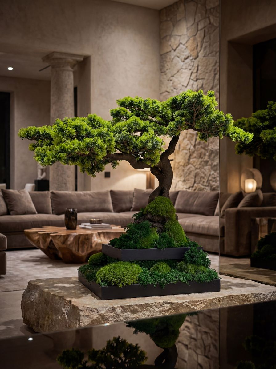 Специализируемся на предметах декор из стабилизированного мха: панно, логотипы, скульптуры и создаем деревья бонсай со стабилизированной и искусственной хвоей.